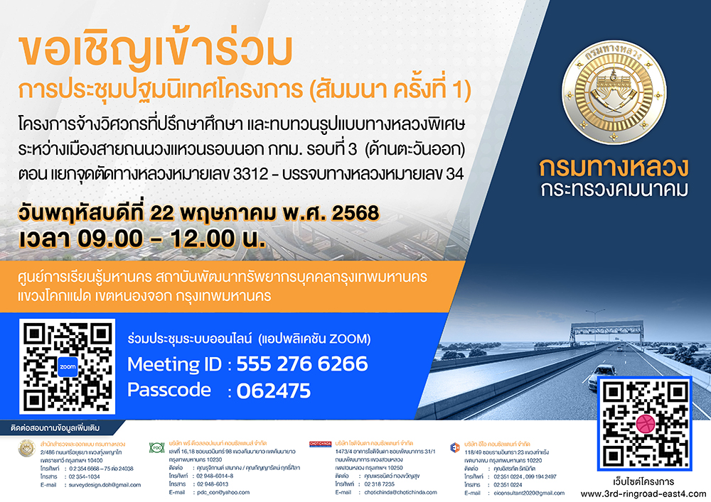 โครงการจ้างวิศวกรที่ปรึกษาศึกษา และทบทวนรูปแบบทางหลวงพิเศษระหว่างเมือง